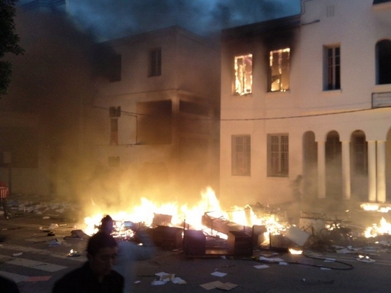 Protestors in Ajdabiya claimed that it was a 'Free City' after the headquarters of Gaddafi's Revolutionary Committee were burned down on Friday, along with 14 other buildings.